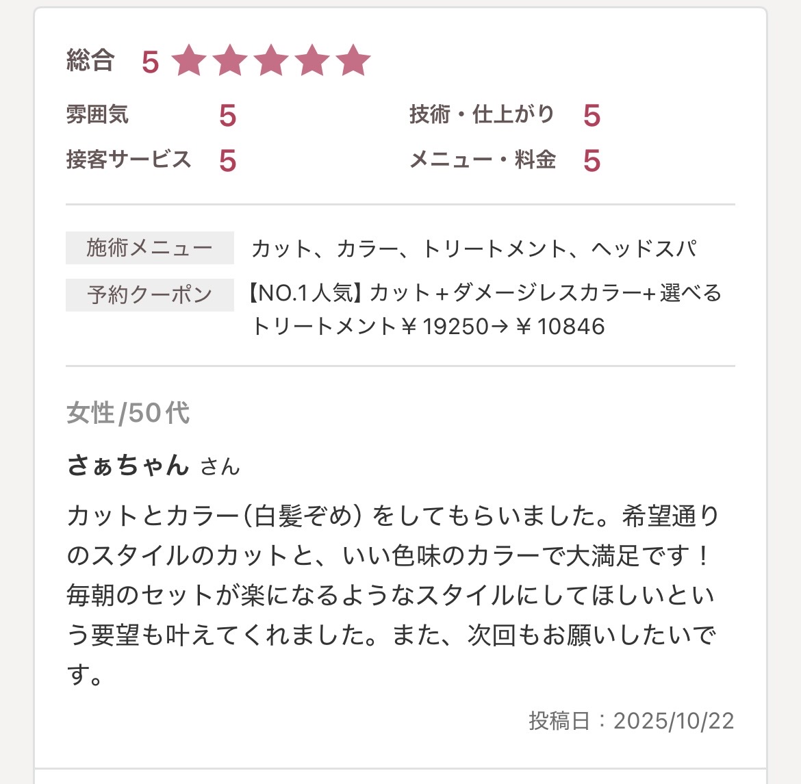 (ホットペッパービューティーの口コミより)