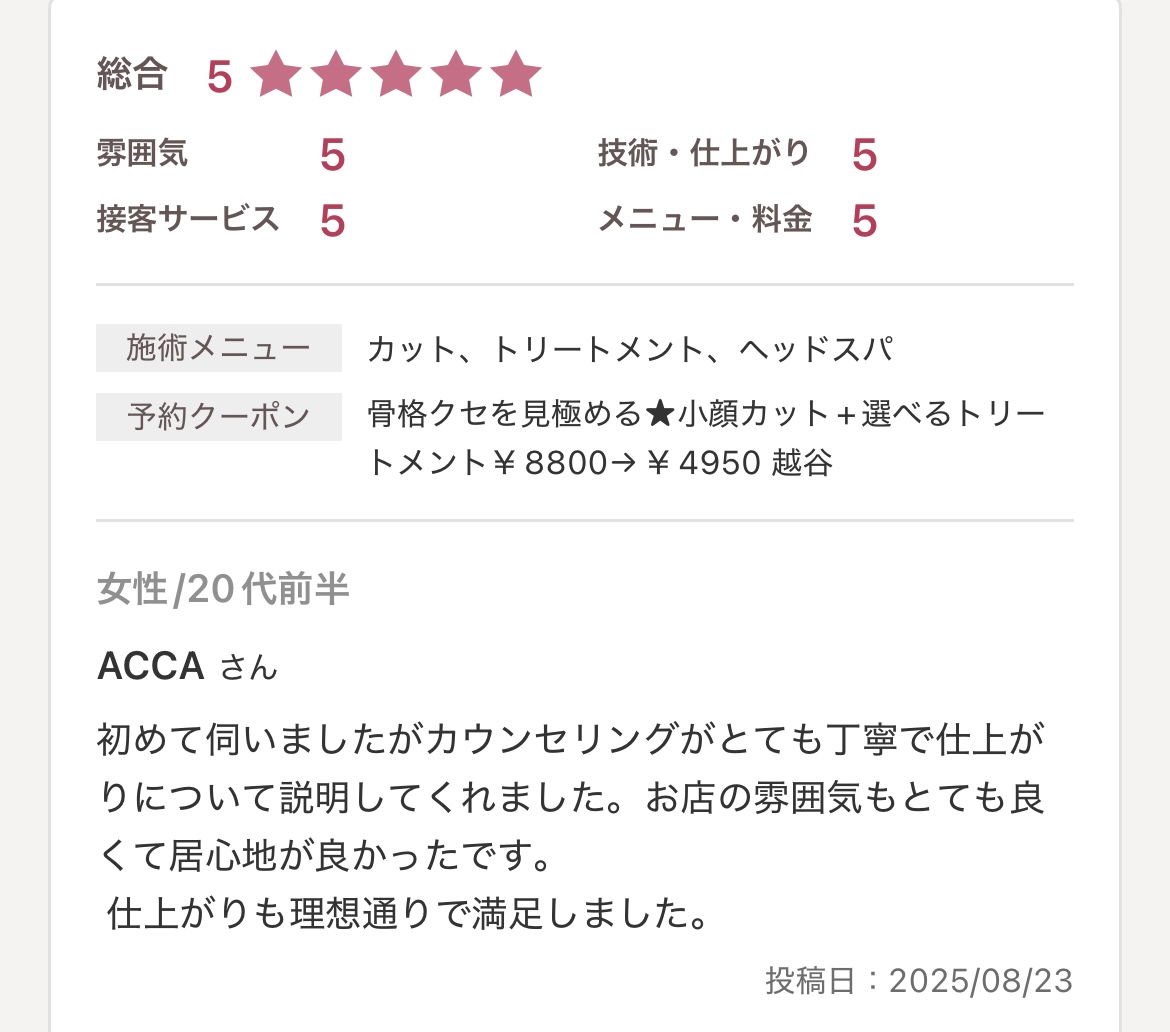 - 【越谷】お客様よりいただきましたお声のご紹介☆