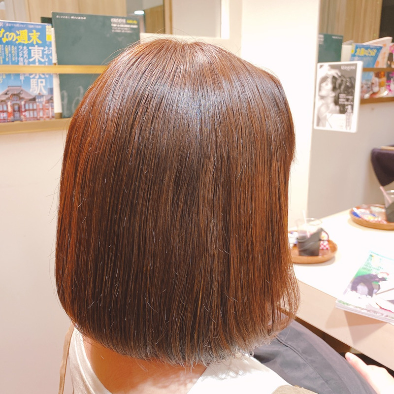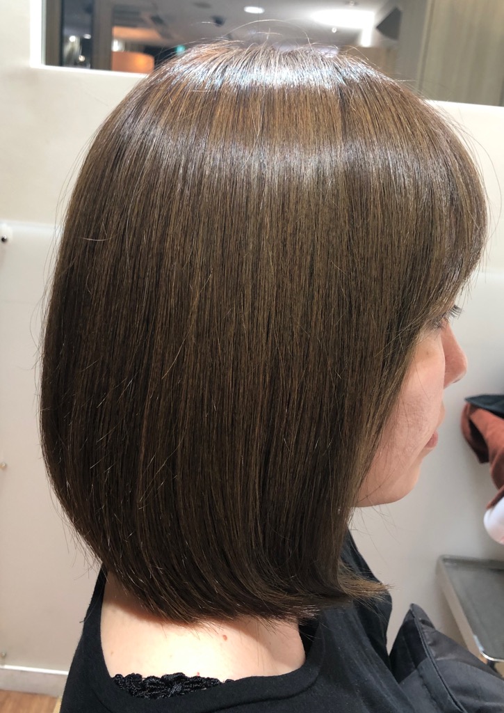 お客様の希望の色に染めながら、〈艶〉〈ダメージ補修〉〈柔らかい手触り〉にしてくれるカラーです。