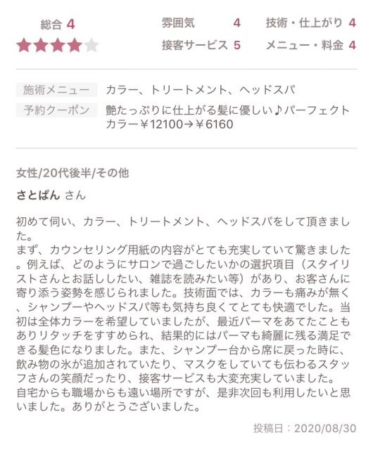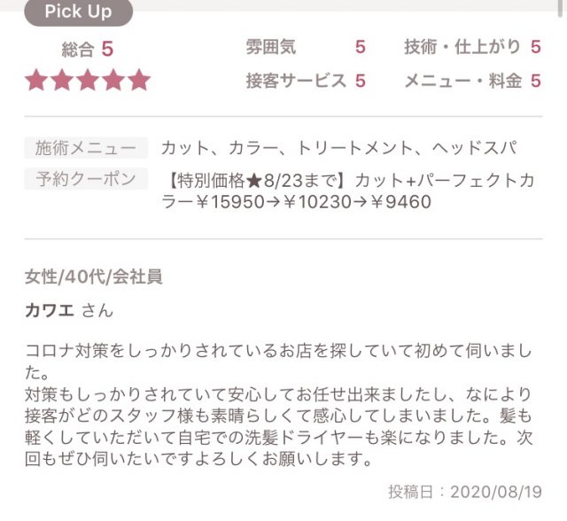 先月は初めて当店をご利用いただいたお客様より多くのお声を頂きました★