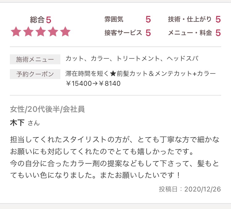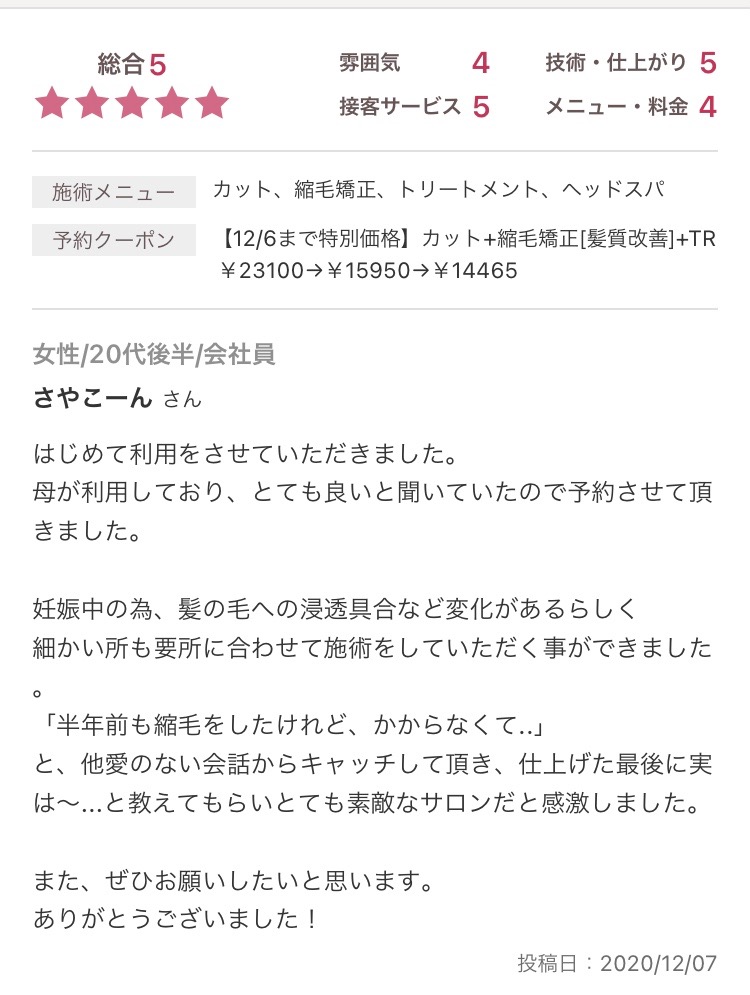 ※口コミやアンケートにご協力いただけるお客様にはお会計時にお声がけ、