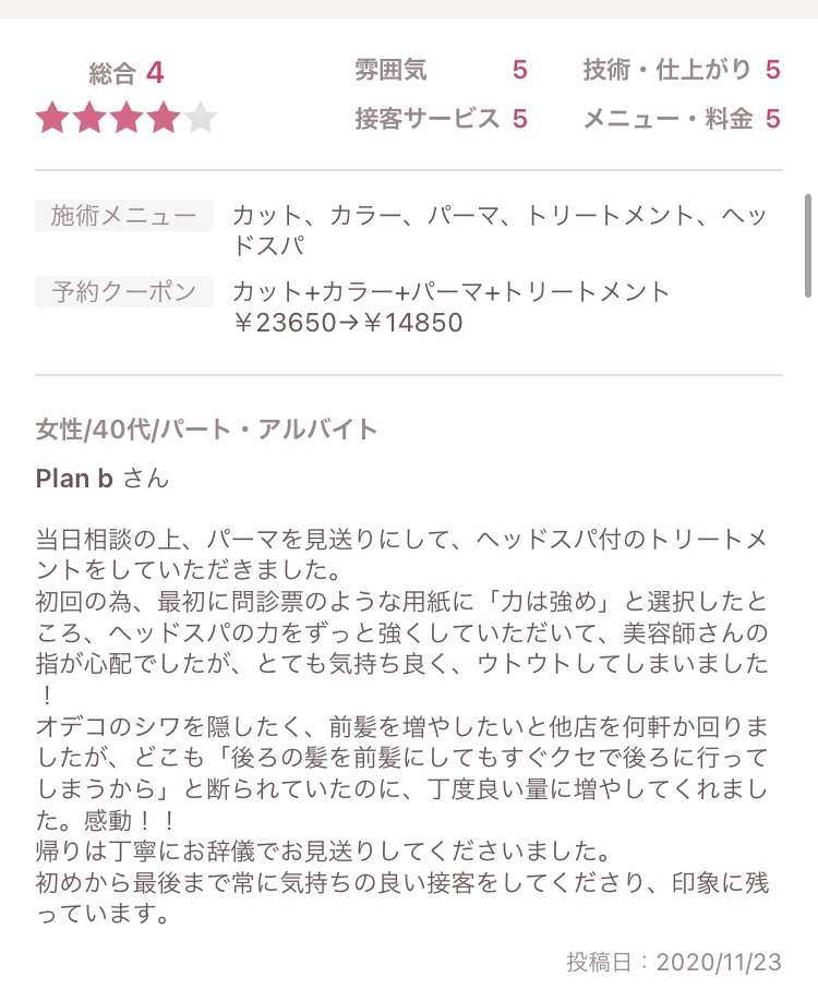 ※口コミやアンケートにご協力いただけるお客様にはお会計時にお声がけ、