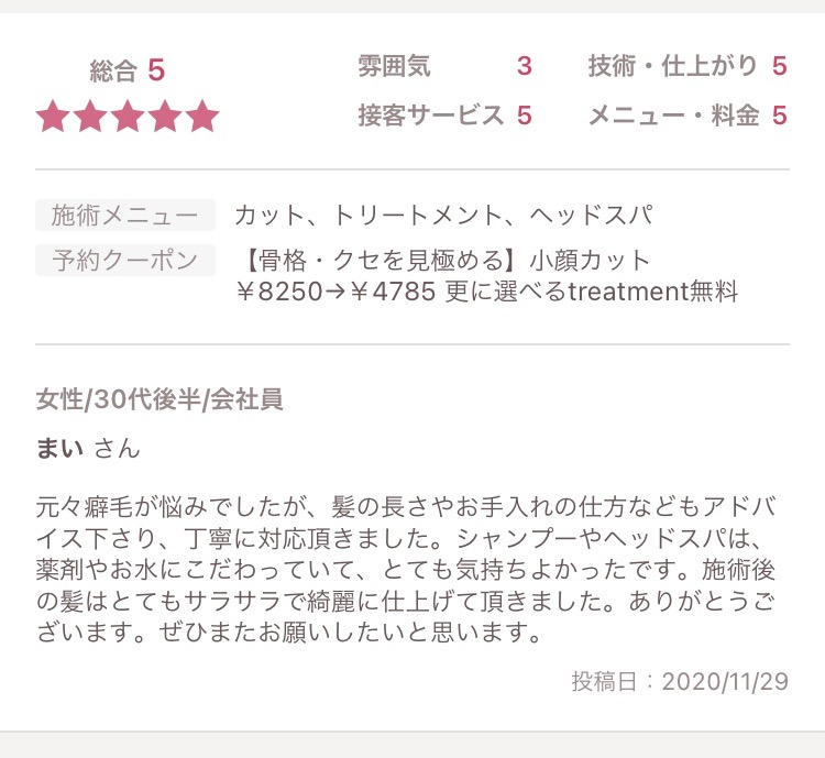 ※口コミやアンケートにご協力いただけるお客様にはお会計時にお声がけ、
