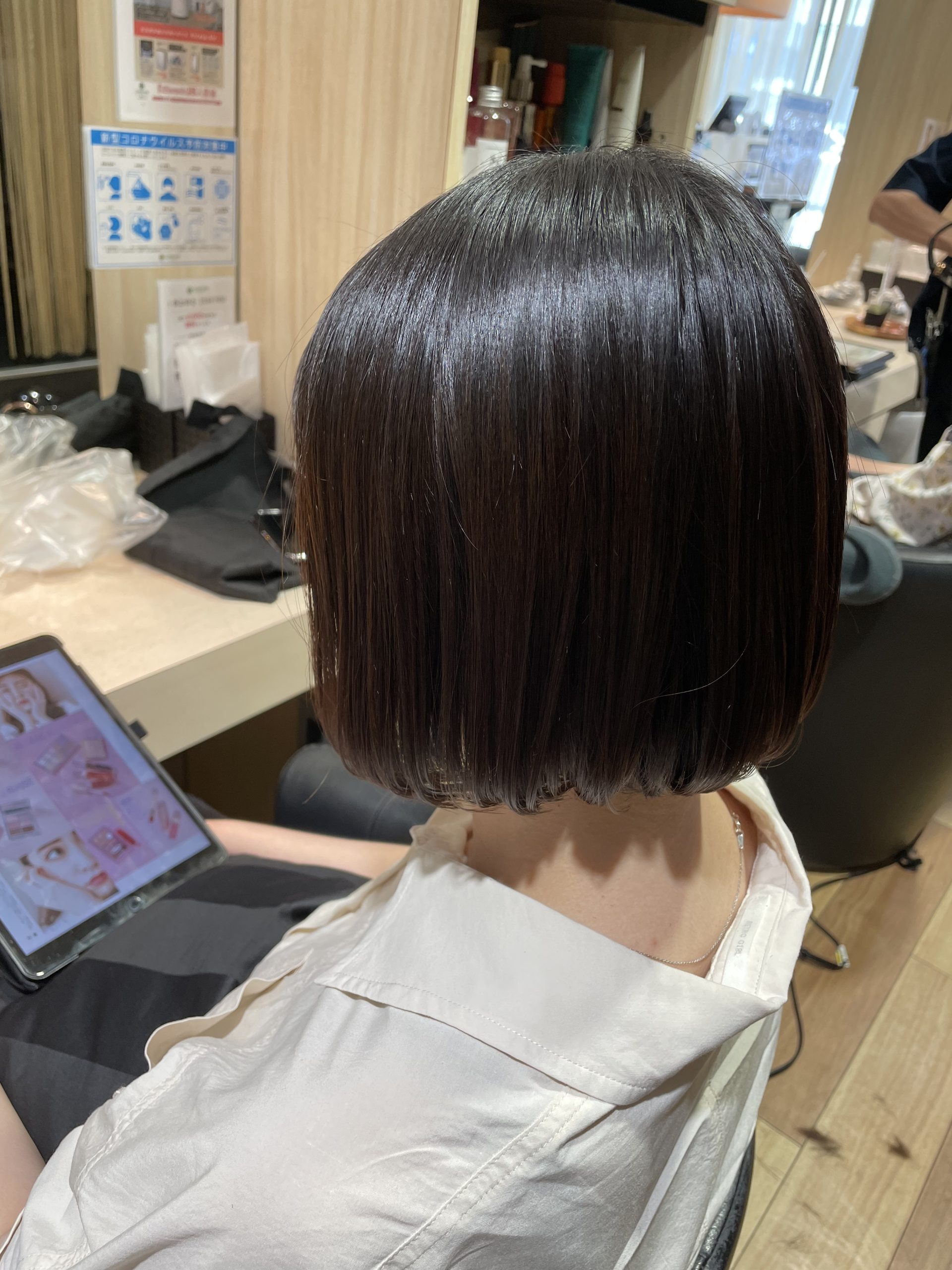 レイヤーが入ったスタイルは髪質によって扱いにくくなってしまいますが、ボブスタイルは