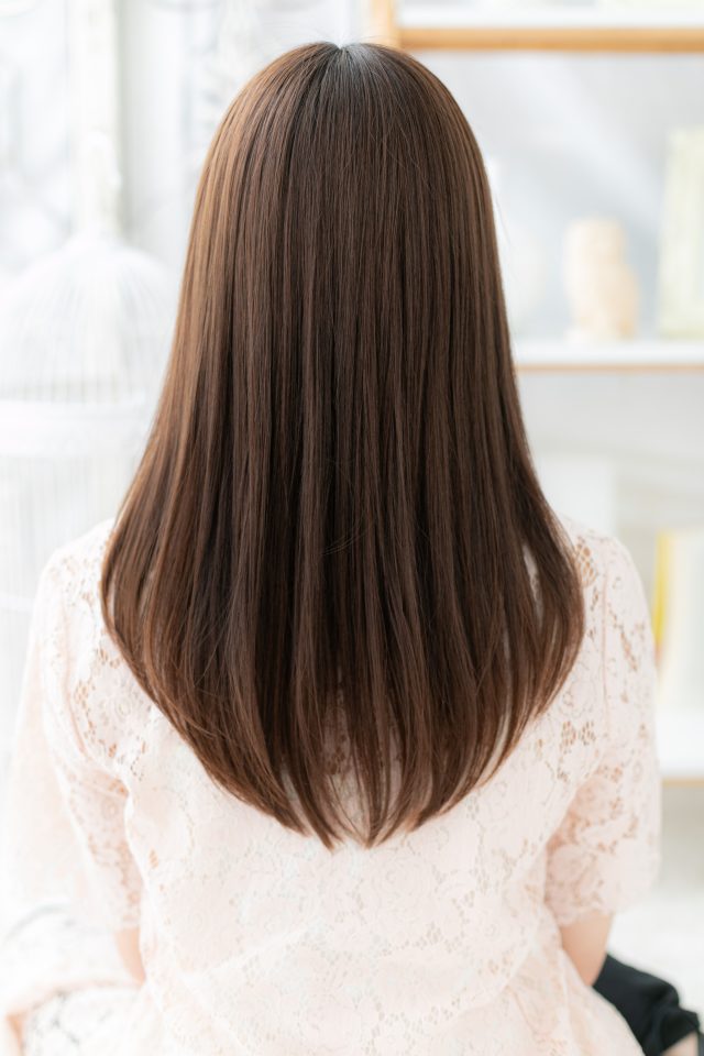 好感度大のワンカールストレートは外国人風ツヤカラーで透明感を演出。斜めバングや厚めバングで目力強調したり、耳かけも大人かわいい。くせ毛風ふわミディやくびれミディもモテ髪型。(メイク担当:COVERHAIRGROUP棟方)