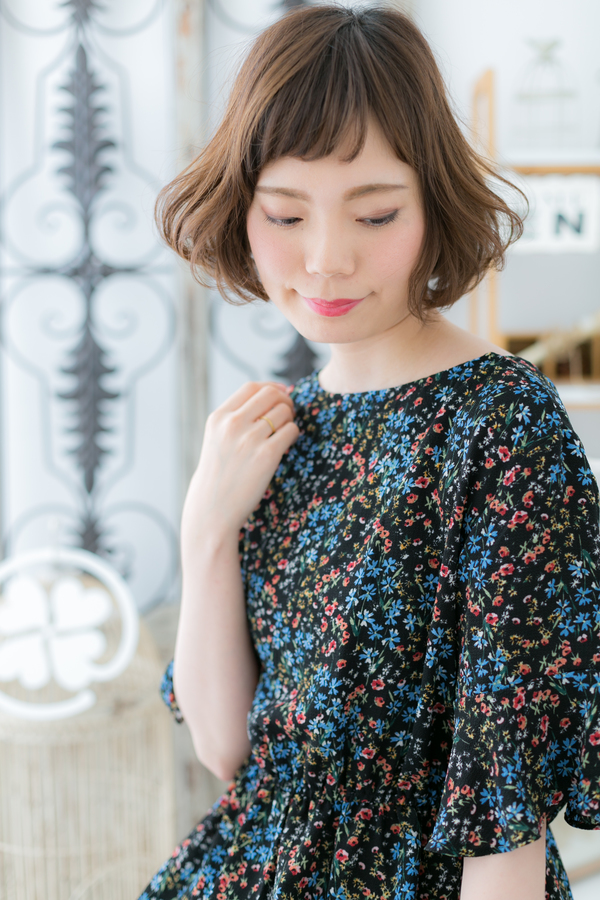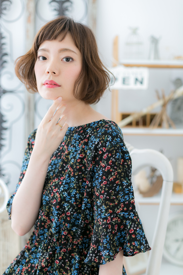 個性的なオン眉がぱっと目を引くフェミニンボブ。アシンメトリーなヘアアレンジでフレンチシックな大人女子に。トリートメントしたようなカラーリングで髪の毛の悩みも解決!人気のカラーやアッシュグレー、ブリーチなしもおすすめ!30代・40代にも◎