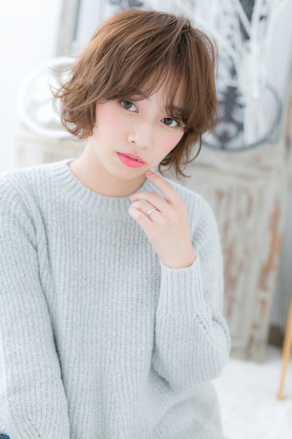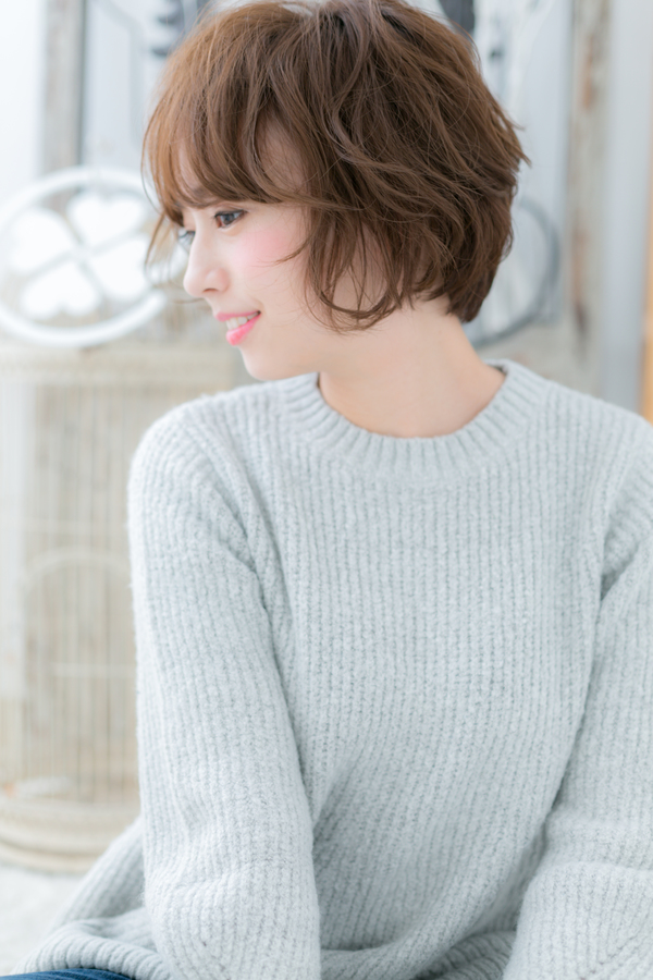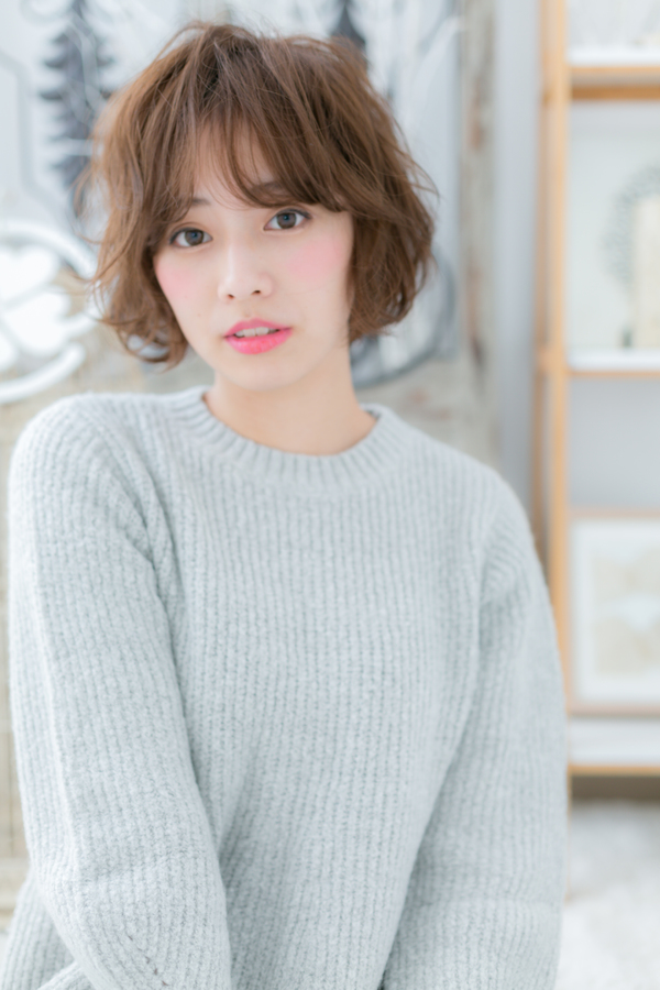 やわらか質感のくせ毛風ふわくしゅカールでガーリーに仕上げたフェミニンボブのヘアスタイル。長めの斜めバングで目力強調。厚めバングやオン眉で個性的にして大人女子のファッション度UP。ミディアムヘアを際立たせるグラデーションやベージュで暗めの髪の色も解決!40代のおすすめのパーマ感のあるボブも◎