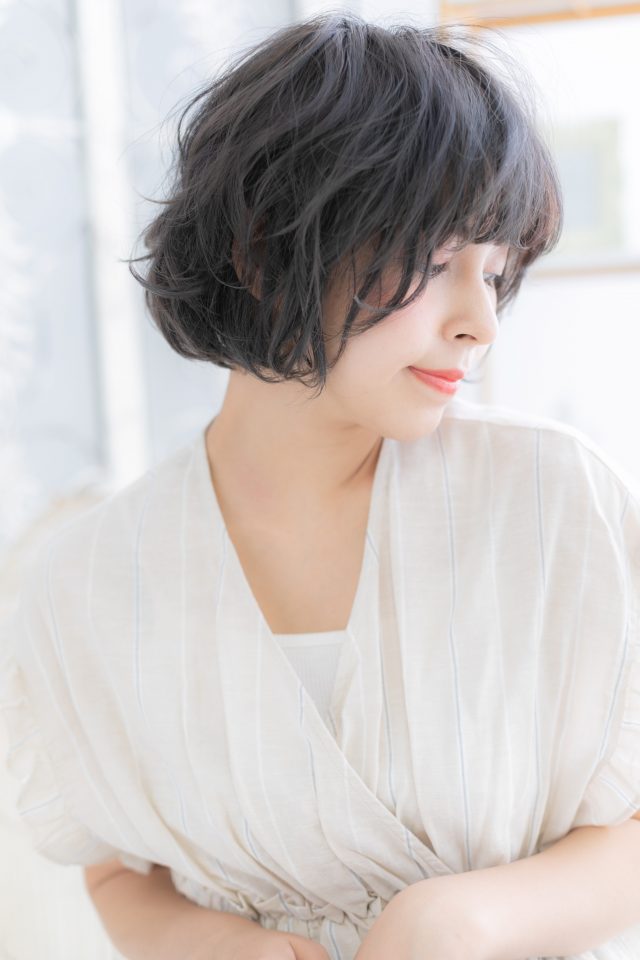 - トップにくせ毛風ボリュームを持たせてスタイルアップ効果/小顔に見える髪型やモテヘアアレンジもご相談を/斜めバングや厚めバングが◎ふわミディやくびれミディなど伸ばしかけもお任せください/ヒアルロン酸カラーは白髪にも対応可/20代/30代/40代/50代