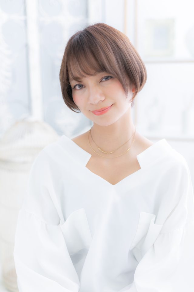 前下がりで小顔見せ効果バッチリのナチュラルボブのヘアスタイル。フェミニンボブや大人ボブ、エアリーボブや前下がりボブなどヘアアレンジも楽しい。(メイク担当:川口店 成田)