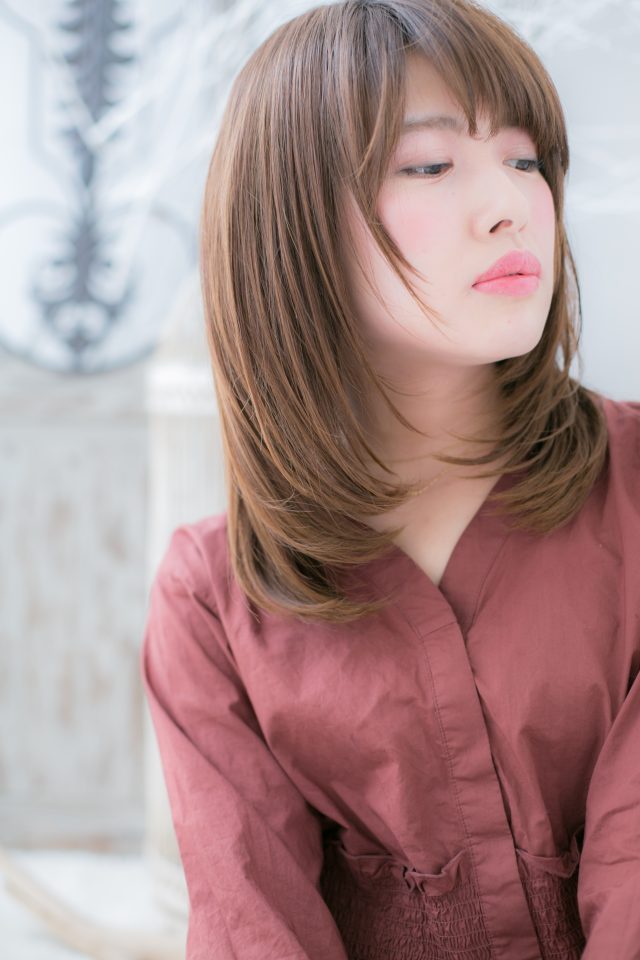 斜めバングはサイドと繋げてなめらかで優しい雰囲気に。耳かけでスッキリさせたり、くせ毛風カールをつけたふわミディにヘアアレンジしても大人かわいい♪前下がりで小顔にして大人女子のファション度UP☆厚めバングで目力UPすれば美人度上昇!ミだディアムヘアを際立たせるグラデーションやトリートメントしたようなカラーリングで髪の毛の悩みも解決!人気のカラーや思い通りの茶色のカラーもおすすめ!30代・40代にも◎
