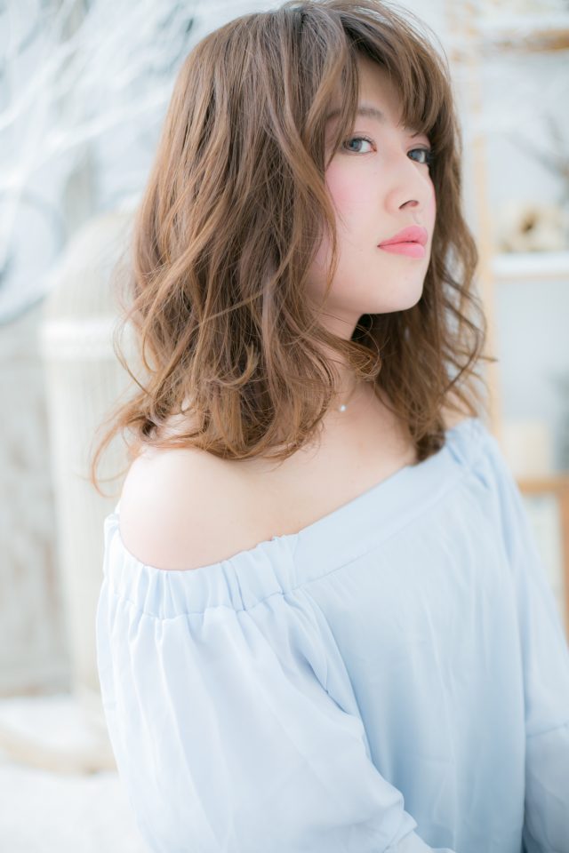 くせ毛風のやわらかパーマが大人かわいい印象のふわミディのヘアスタイル。斜めバングでフェミニンにしたり、厚めバングやオン眉で個性的にしてもGOOD。大人女子のコーデを完成!ナチュラルボブやフェミニンボブ、大人ボブや前下がりボブからの伸ばしかけに◎トリートメントしたようなカラーリングで髪の毛の悩みも解決☆人気のカラーやピンク系のカラーもおすすめ!30代・40代にも◎