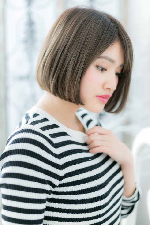 シンプルイズベスト!を叶えるツヤ感キラめくナチュラルボブ。前下がりで輪郭カバーしてスッキリ小顔みせで大人女子のファッションを完成。クラシカルな黒髪やグレージュ、マーメイドアッシュで肌色キレイに見せて好感度もUP!耳かけも大人かわいい。トリートメントしたようなカラーリングで髪の毛の悩みも解決!カラーはアッシュグレー、ブリーチなしもおすすめ!30代・40代にも◎