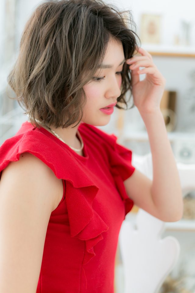 前下がりで輪郭カバーし、小顔にメイクした大人ボブ。抜け感を演出するくせ毛風パーマで大人かわいい雰囲気に。耳かけしたり、斜めバングや厚めバングで目力UPで大人女子のコーデを完成。外国人風のこなれ感で、ふわミディを格上げ♪ミディアムヘアを際立たせるグラデーションで髪の毛の悩みも解決!アッシューグレー、ブリーチなしもおすすめ!30代・40代にも◎