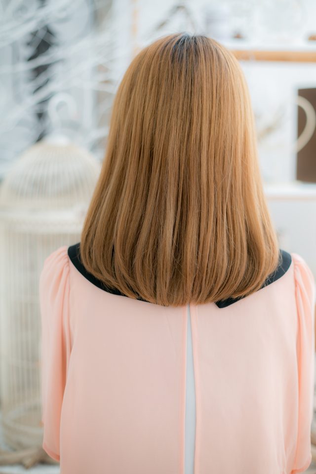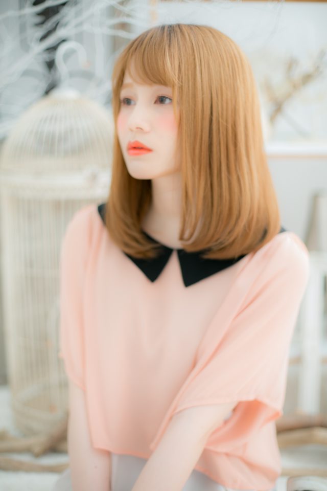ローレイヤーの重めスタイルは、ツヤ感ストレート&パッと人目を引くハイトーン仕上げで、個性的な華やぎワンカールに♪ナチュラルミディに飽きた方、ボブからの伸ばしかけにも◎(メイク担当:COVER HAIR グループ 棟方)