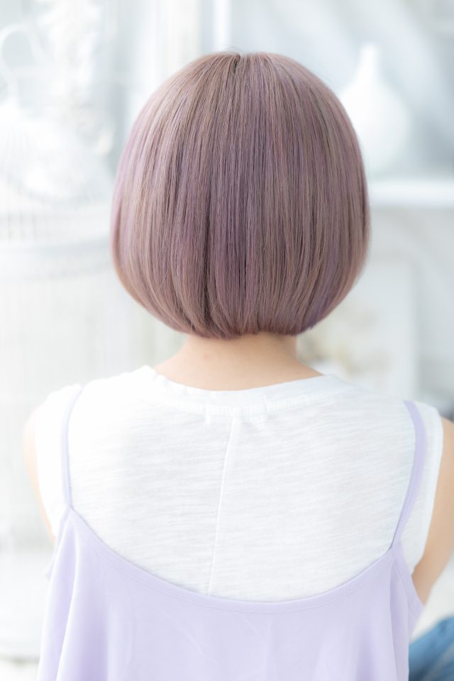 大人ガーリーラベンダーカラー前下がりボブ