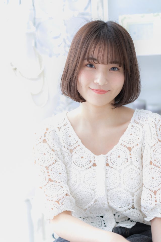 ナチュラルボブやフェミニンボブ、大人ボブや前下がりボブからのイメチェンに◎くせ毛風ゆるふわミディや耳かけエアリーミディも大人かわいい。斜めバングや厚めバング、前下がりで小顔。(メイク担当:上尾店 中田)