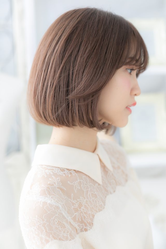 斜めバング厚めバング、シースルーバングが大人かわいい。ナチュラルボブフェミニンボブ、大人ボブ前下がりボブ、切りっぱなしボブで小顔。くせ毛風ゆるふわミディや耳かけ前下がりウルフも◎(メイク担当:上尾店 中田)