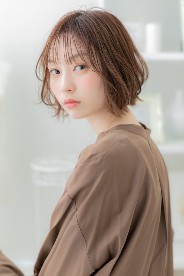 - インナーカラー/バレイヤージュ/ハイトーンカラー/ミニボブ/韓国風/ボブ/ウェットヘア/ナチュラルマッシュショート/イヤリングカラー/丸みショート/オリーブアッシュ/くすみカラー/くびれショート/ナチュラル/20代/30代/40代