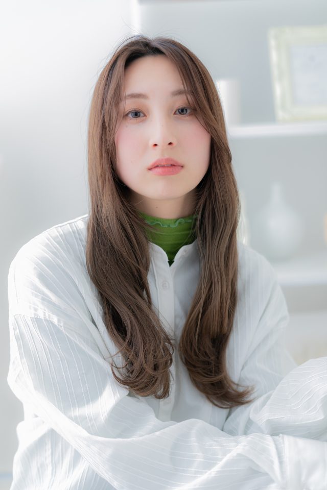 くせ毛風ゆるふわミディや耳かけ前下がりウルフで小顔。斜めバング厚めバングシースルーバングが大人かわいい。ナチュラルボブフェミニンボブ,大人ボブ前下がりボブ,マッシュボブも人気。(メイク担当COVERHAIRGROUP岩淵)