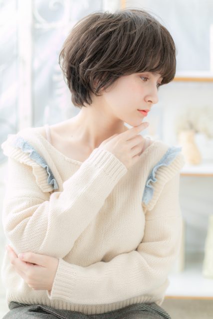 グレージュカラーくせ毛風ボブマッシュパーマ