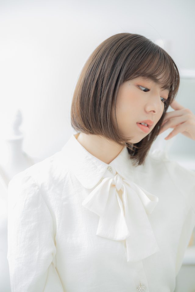 大人ガーリーダークアッシュ小顔ぱっつんボブ