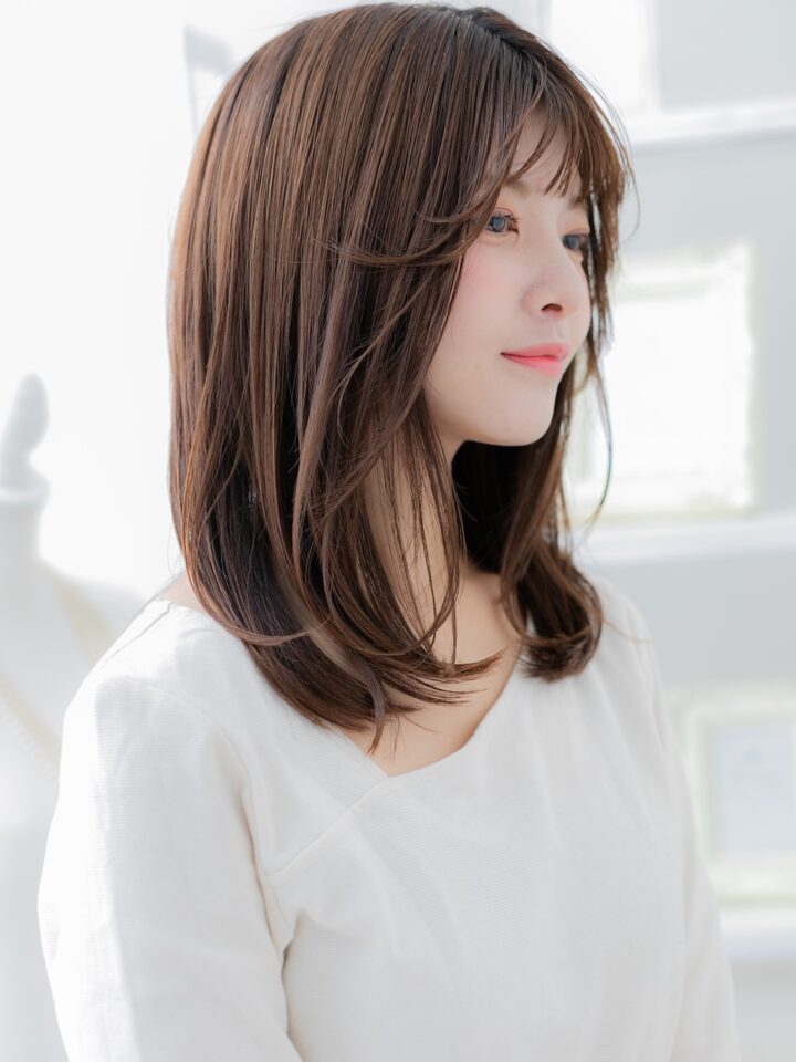 レイヤーカット艶感ストレートミディアム20代30代40代