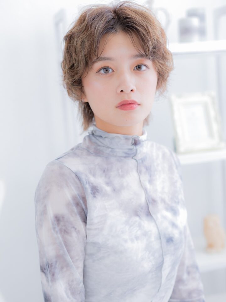 大人可愛いニュアンスパーマ小顔ショート20代30代