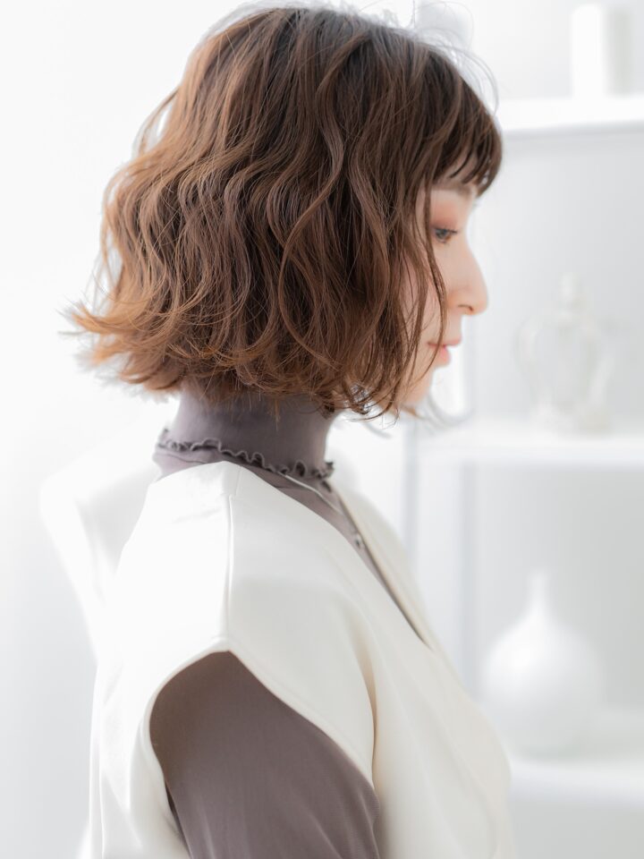 大人可愛い波巻き小顔ボブ20代30代