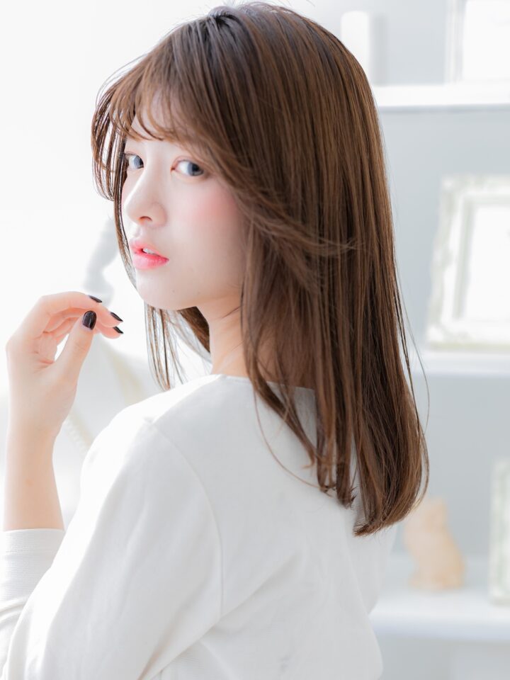 斜めバング厚めバング、かきあげ前髪も大人かわいい。切りっぱなしボブミニボブ、大人ボブフェミニンボブからの伸ばしかけに。くせ毛風ゆるふわミディやエアリーミディ耳かけウルフも人気。(メイク担当:川口店伊与田)