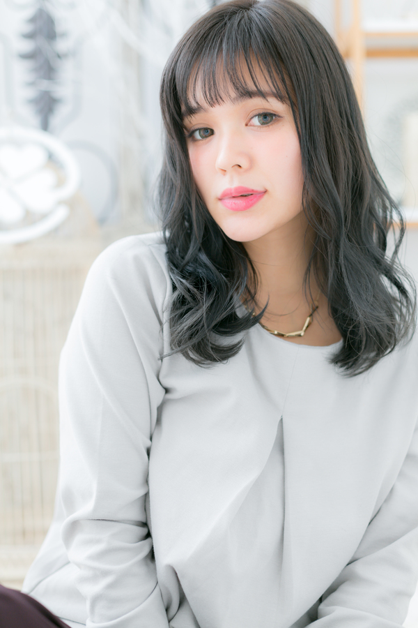 濡れたようなツヤ感が色っぽいヴェールウェーブセミディのヘアスタイル。くせ毛風の毛流れで抜け感を出し、前下がりで小顔に見せで大人女子のファッション度UP。斜めバングや厚めバング、ジグザグバングで目力強調してヘアアレンジも◎。30代・40だいにもおすすめ!