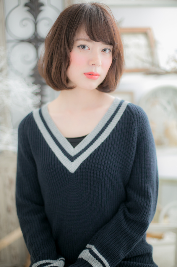 クセのある方は、パーマ無しでクセを生かしてスタイルに!基本はスタイリング剤無しでOKなのも嬉しいポイント。カール感が取れ易い方は、内巻きにブローして、崩してセットを。