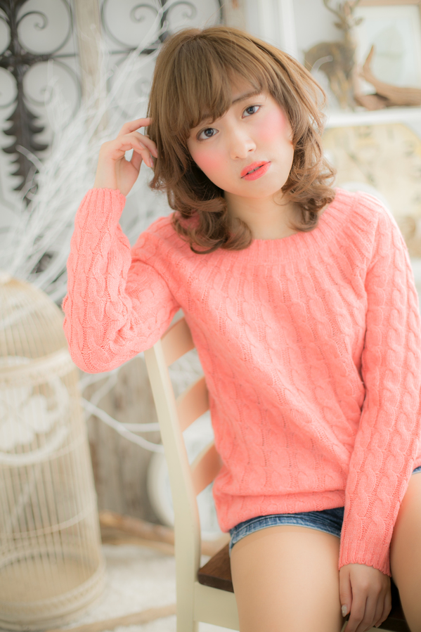 毛先のカールは、整えないで無造作に動きをだす様に♪少しセミウェットな質感をプラスすればフェミニンな雰囲気にも見えます。