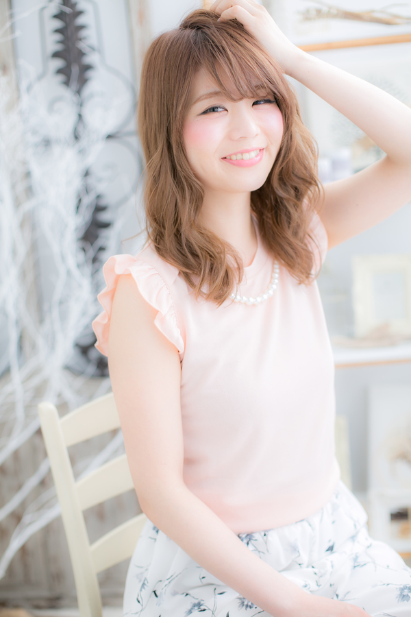 透明感たっぷりのベージュカラーとシフォンの様なやわふわウェーブで女の子らしさが光るスタイルです。アップやアレンジもしやすいのでチャレンジしてみてください☆
