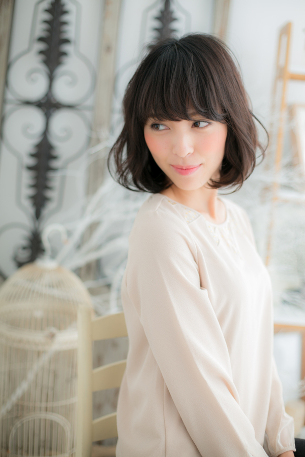 ダークトーンのほんのりアッシュカラーで落ち着いたフェミニンスタイル。ペタンコになりやすい方や動きのあるふんわりスタイルに憧れる方のオススメです。