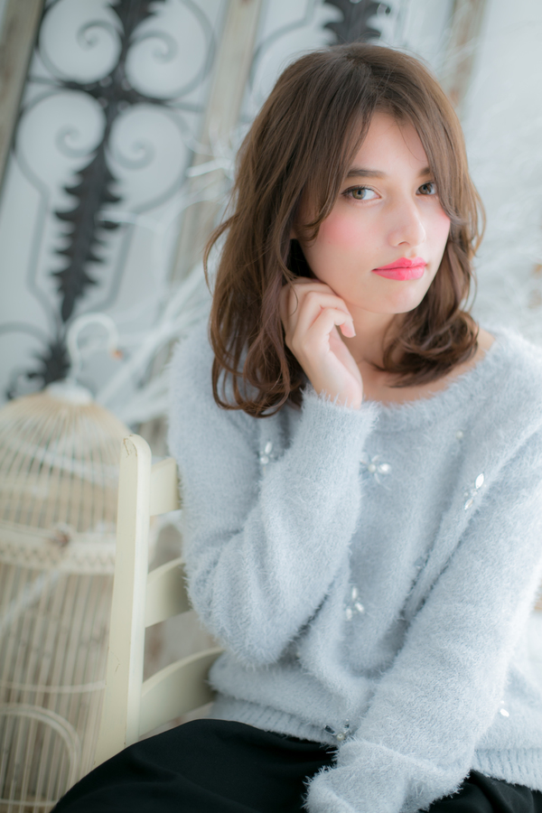 ヌーディでフェミニンなアッシュ系のカラーに潤いパーマで動きをプラスした大人なスタイル。分け目を変えれば雰囲気も変わります☆