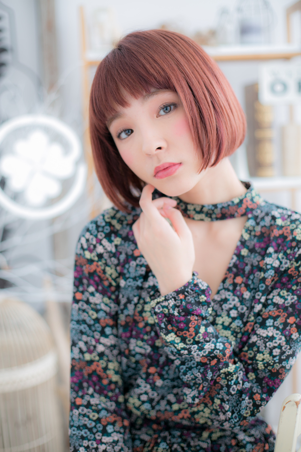 • 外国人風ピンクブラウンくせ毛風ボブショート