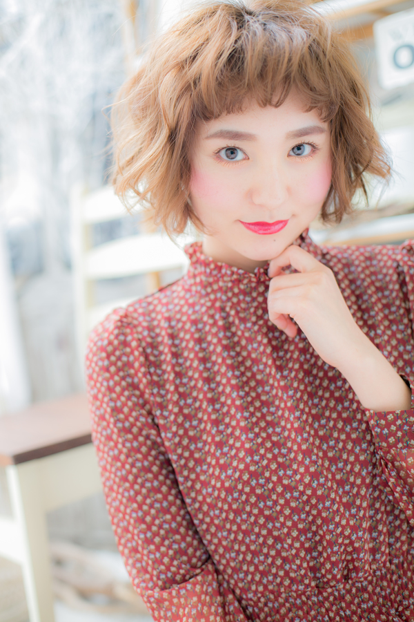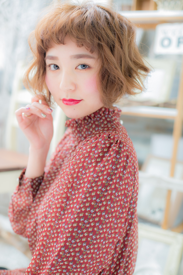 • 外国人風ピンクブラウンくせ毛風ボブショート
