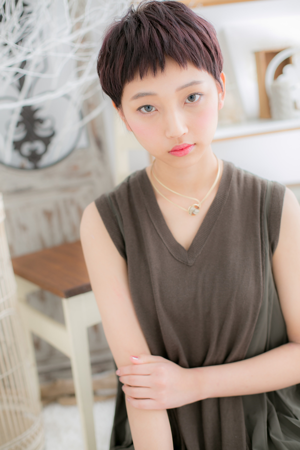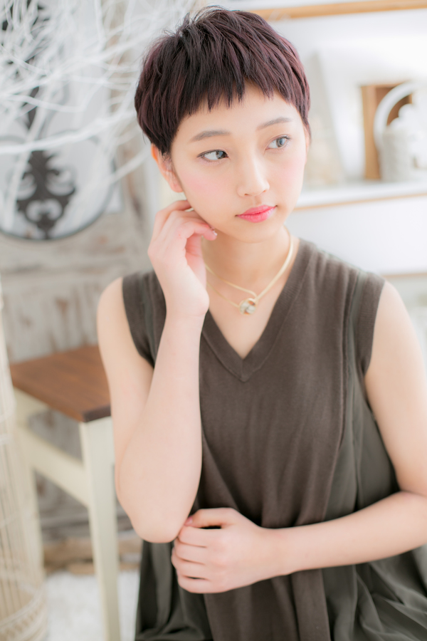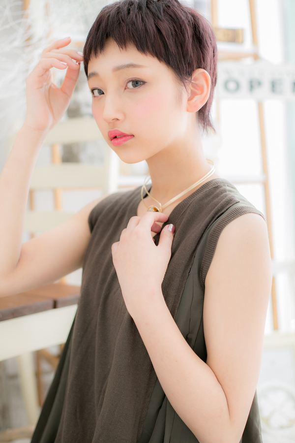 耳出し&ショートバングの思い切ったベリーショート。コンパクトなシルエットは小頭効果もスタイルアップ効果も抜群!レッド・ピンク系カラーをオンして、ボーイッシュになり過ぎない、フェミニンな大人キレイをプラス。