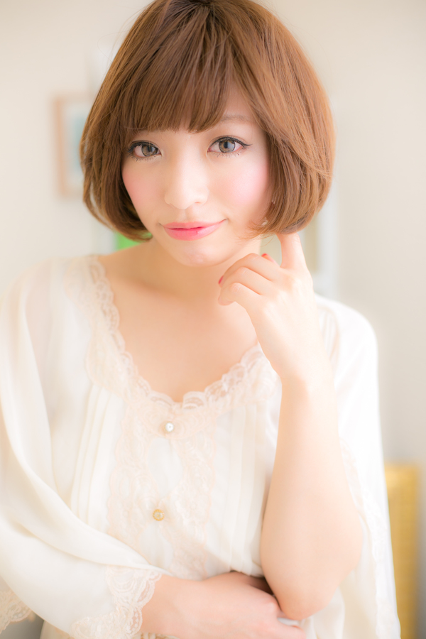 ボブの重めスタイルに,眉ラインでそろえた厚めバングがキュートなフェミニンボブ。ハイトーンと似合わせカットで柔かさを!黒髪や暗髪カラーでグラマラスに仕上げても大人かわいい★クセ毛のようなカールがラブリーな大人ボブ。センターパートや前下がりも◎