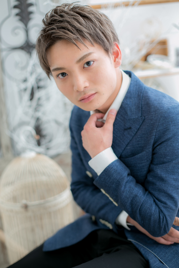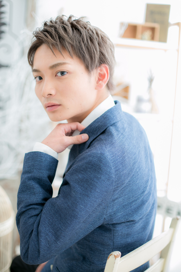 サイドを刈り上げた爽やか七三マッシュ。好感度大の王道ヘアはカラーで差をつけて!外国人風のベージュカラーやアッシュ系カラーで表情豊かに仕上げ、男前っぷりUPのモテショートに!(メイク担当:COVER HAIR GROUP 棟方)