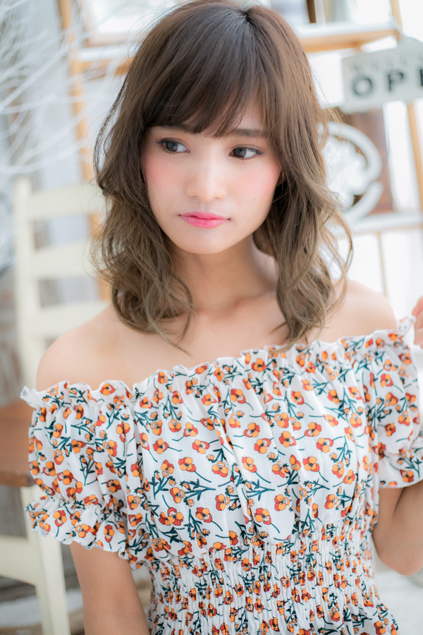 顔周りのカール、特に頬骨にかかる毛束で骨格をカバーして、お顔をキュッと引き締めて小顔に見せます。斜めバングとくびれカールのたおやかな動きで旬のハニーヘアに。男女問わず人気の愛され好感スタイルに格上げ♪