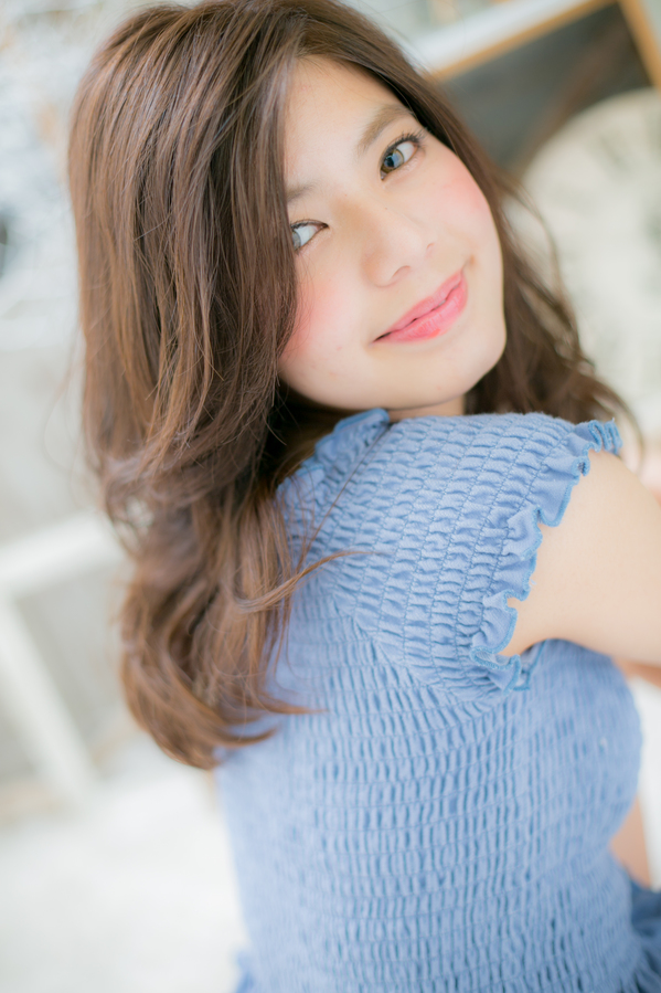 リップラインからのくびれカールとうざバングでほんのり色っぽく。イノセントカラーやローライトでヌーディに仕上げれば、派手過ぎない健康的フェミニンな印象に。