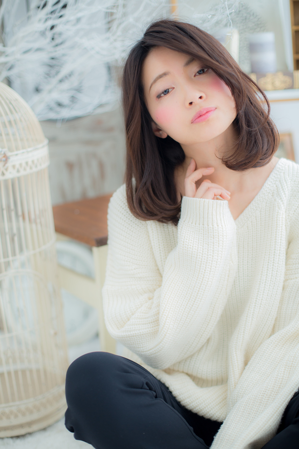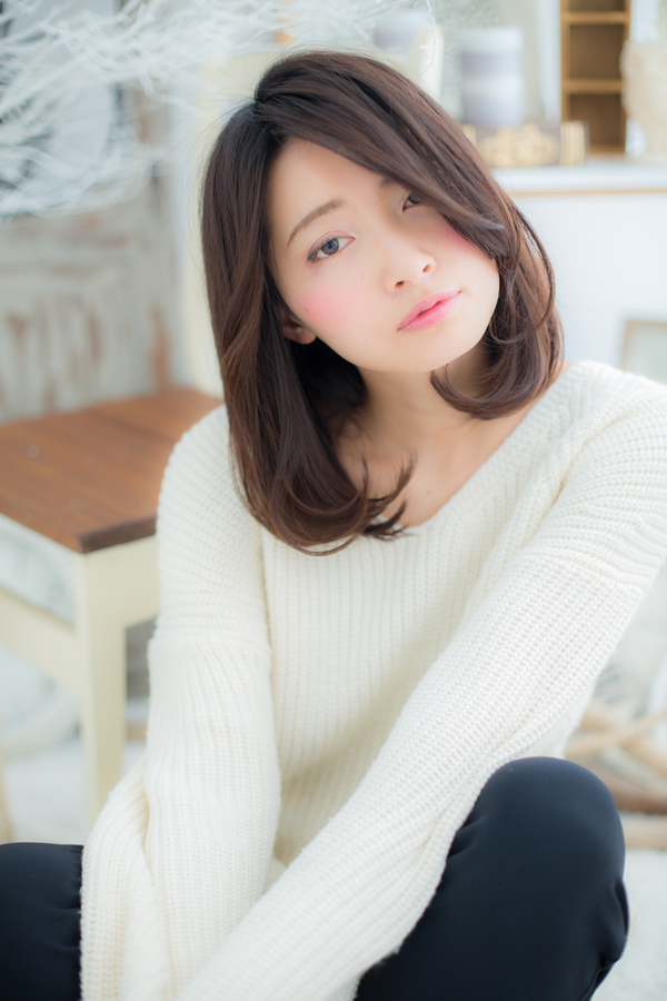 ナチュラル&リラクシーな雰囲気の中に大人女子の余裕とこなれ感が漂う、表情豊かなワンカールミディ。ノームコアなスタイルをエレガントに格上げします。(メイク担当:COVER HAIR GROUP 棟方)