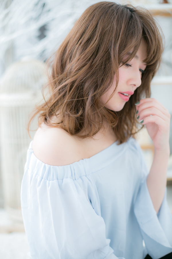 くせ毛風のやわらかパーマが大人かわいい印象のふわミディのヘアスタイル。斜めバングでフェミニンにしたり、厚めバングやオン眉で個性的にしてもGOOD。大人女子のコーデを完成!ナチュラルボブやフェミニンボブ、大人ボブや前下がりボブからの伸ばしかけに◎トリートメントしたようなカラーリングで髪の毛の悩みも解決☆人気のカラーやピンク系のカラーもおすすめ!30代・40代にも◎