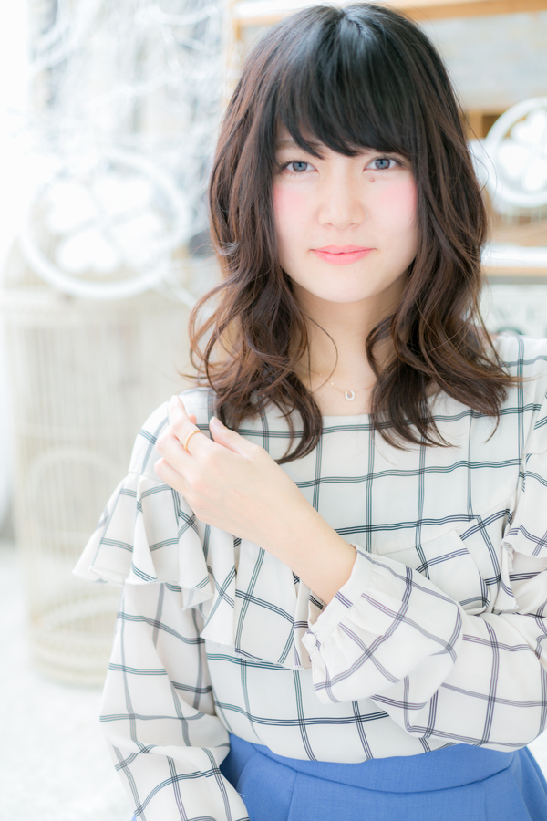 斜めバング×リラックスウェーブミディ