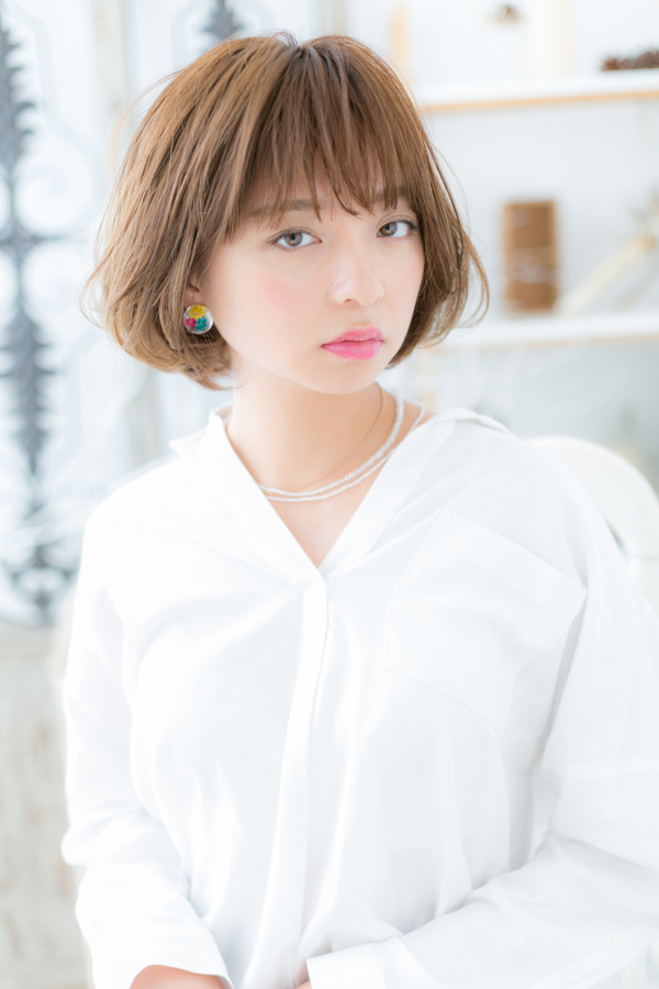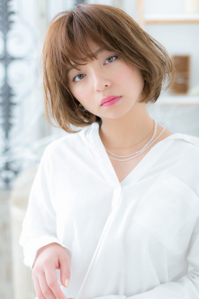 寝起きみたいな、ふわくしゅっとしたくせ毛風カールがcuteなフェミニンボブ。斜めバングや厚めバングと合わせて目力強調で大人女子のファッション度UP。ミディアムヘアを際立たせるグラデーションやベージュで髪の色は暗めもおすすめ!30代・40代にも◎(メイク担当:COVERHAIRGROUP成田)