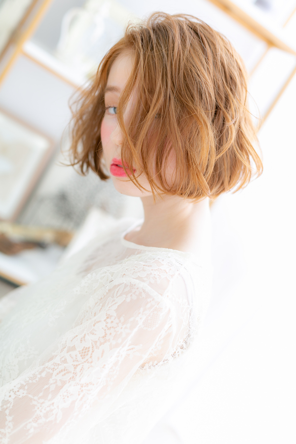 個性的カラーで周囲と差を付けたい方に!リラクシーなこなれ感のあるミディアムヘアを際立たせるグラデーションカラー&くせ毛風パーマで大人女子のコーデを完成。ナチュラルボブやシンプルな大人ボブ、前下がりボブからのヘアアレンジに◎30代・40代にもおすすめ!(メイク担当:COVERHAIRGROUP成田)