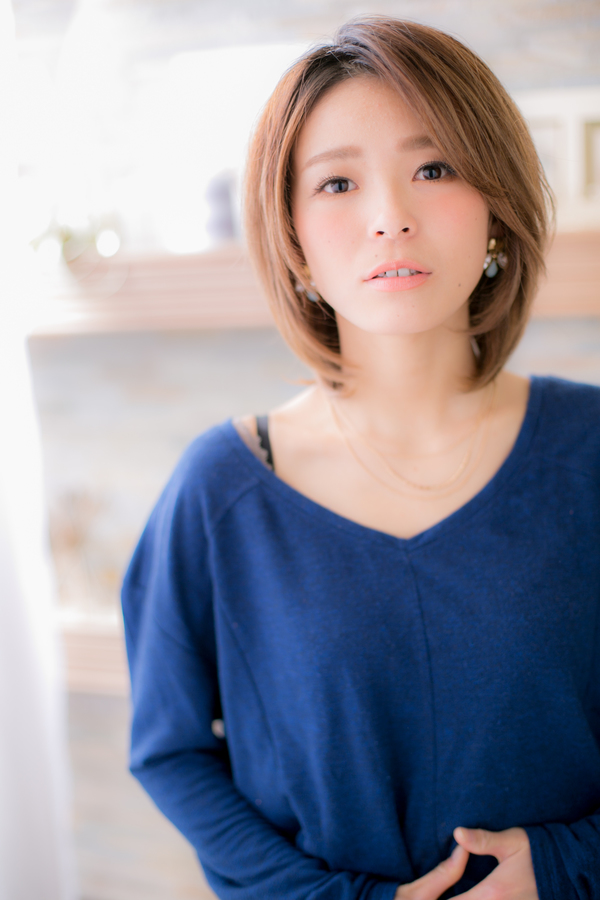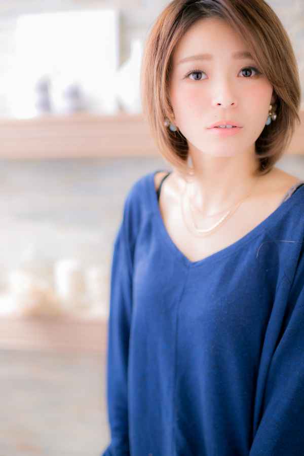 伸ばしかけの方だけでなく、ショートにしたいけど勇気のない方にもオススメ!のフェミニンなワンカールミディ。ハイトーンxツヤ感で、重めスタイルの中にも軽さを演出。トーンダウンや暗髪・黒髪にすればオフィスでも好感度大!センターパートや耳かけも◎