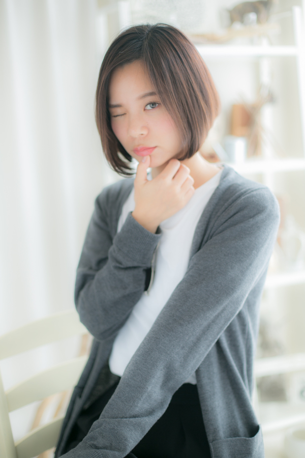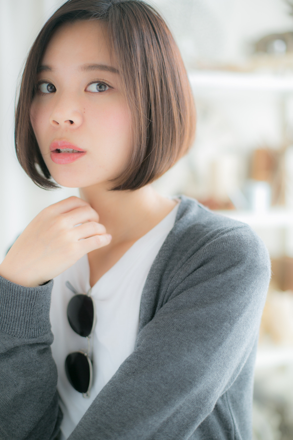 ツヤ感たっぷりのクールなナチュラルなボブ。シンプルな分、似合わせカットの技術が際立ちます。前下がりで顔の輪郭をカバーして、マニッシュな雰囲気に。デキる女風スタイルはオフィスでも一目置かれる存在に。