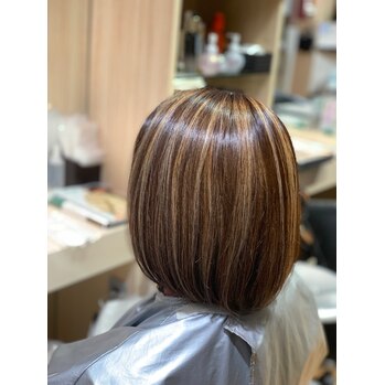 ハイライトカラーは、細く取った毛束に明るい色を入れることで髪に立体感の出るカラーテクニックです。